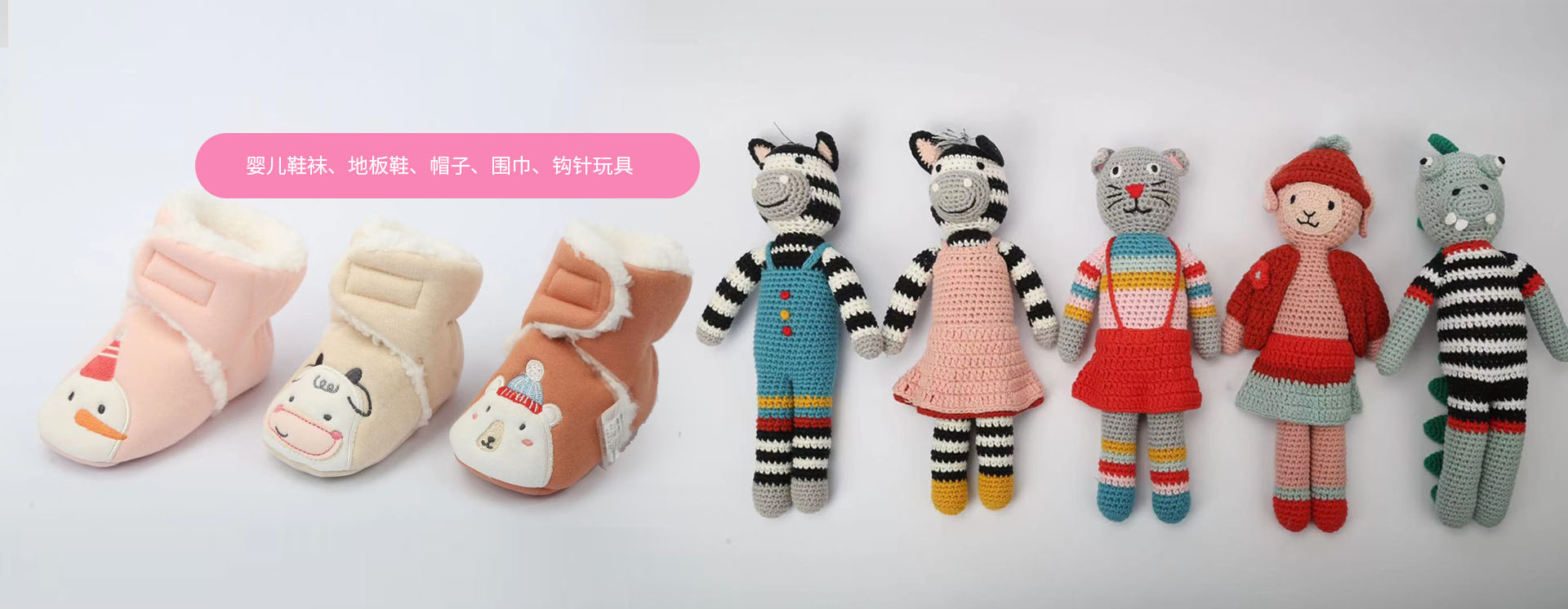 本公司主要生產:嬰兒鞋襪、地板鞋、帽子、圍巾、鉤針玩具等針織品、縫制品和手工制品