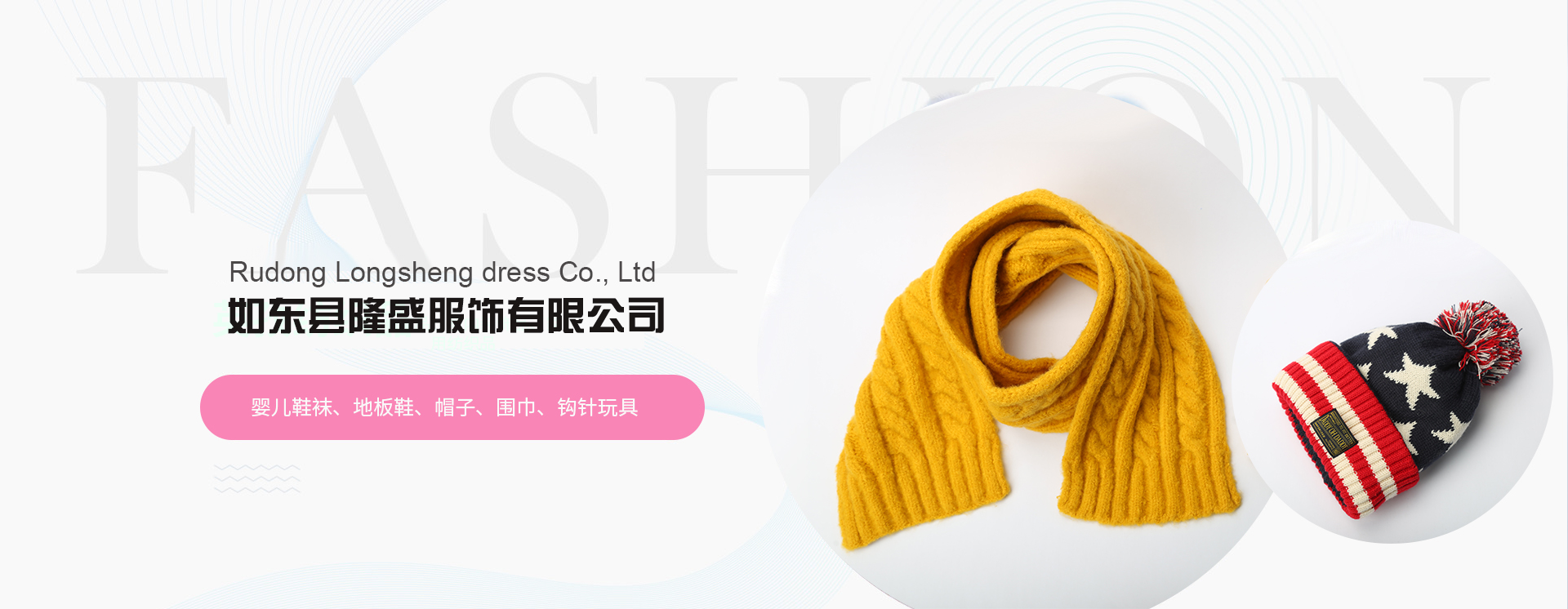 如東縣隆盛服飾有限公司位于素有“手編之鄉"之稱的如東縣袁莊鎮。成立于2002年,是一家集設計、生產、銷售為一體的服飾類企業。本公司主要生產:嬰兒鞋襪、地板鞋、帽子、圍巾、鉤針玩具等針織品、縫制品和手工制品。
